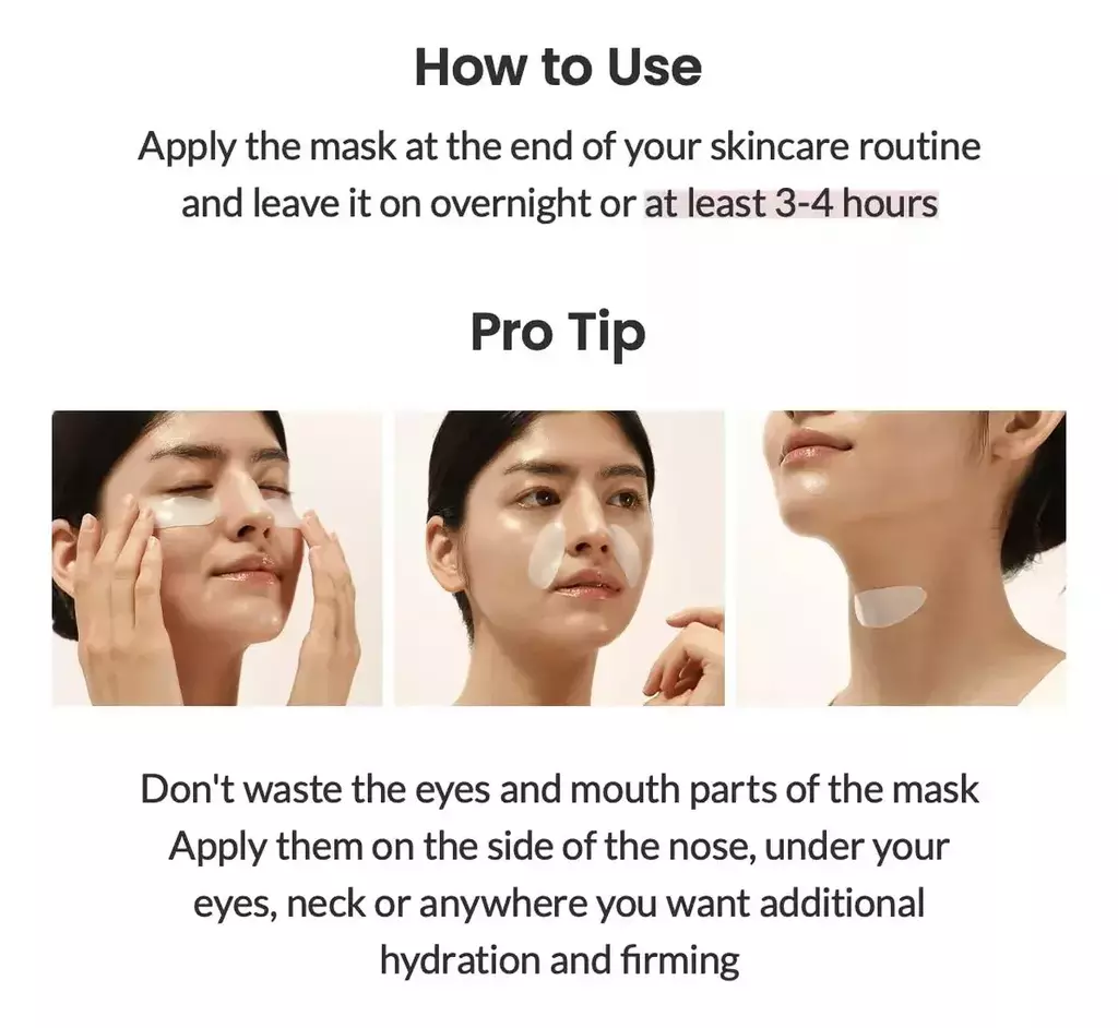 A diferencia de las mascarillas convencionales, esta mascarilla se aplica por varias horas o incluso durante la noche, lo que permite que los ingredientes activos penetren eficazmente, proporcionando un cuidado similar al de un tratamiento profesional.